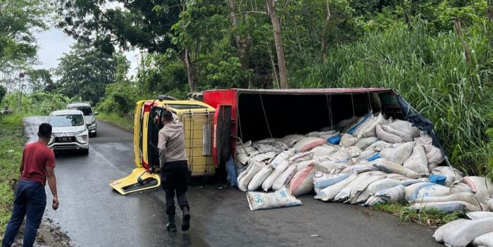 SUKABUMITREN.COM - Sebuah mobil colt diesel Mitsubishi bernomor polisi Z-9157-DC pada Senin, 23 Desember 2024, sekitar pukul 11:30 WIB, mundur dan kemudian terguling di Jalan Raya Cikeong, Kampung Citepus, Desa Citepus, Kecamatan Palabuhanratu, Kabupaten Sukabumi.