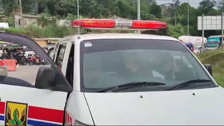 SUKABUMITREN.COM - Sebuah mobil ambulance ber-plat merah, F-9942-0, pada Selasa, 1 April 2025, sekitar pukul 09:30 WIB, ditertibkan petugas kepolisian yang tengah berjaga mengatur lalulintas di Exit Tol Bocimi, Parungkuda, Kabupaten Sukabumi. Mobil dinas kesehatan ini milik Desa Kompa, Kecamatan Parungkuda, Kabupaten Sukabumi. Melaju dari arah Parungkuda menuju Cibadak, Kabupaten Sukabumi, di dalam mobil itu terdapat serombongan warga yang ditengarai hendak bepergian ke tempat wisata di wilayah Sukabumi.