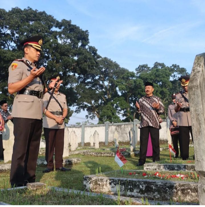 SUKABUMITREN.COM - Polres Sukabumi Kota pada Senin, 24 Juni 2024, menggelar upacara ziarah dan tabur bunga di Taman Makam Pahlawan (TMP) Surja Kentjana, Jalan Taman Bahagia, Kelurahan Benteng, Kecamatan Warudoyong, Kota Sukabumi.